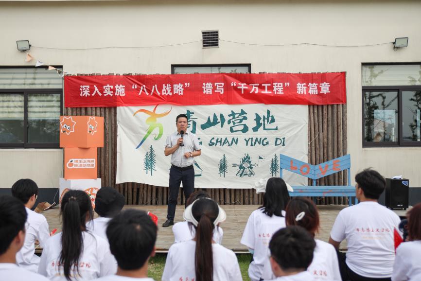 晓塘乡青山头村党支部书记蒋秋军现身说法,结合青山头村十几年的治理经验,为师生讲述乡村是如何通过“强化治安管理,推动农旅结合”,最终实现“共同富裕”的发展故事。
