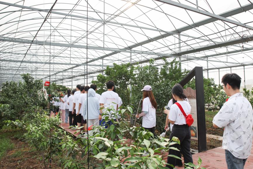 在晓塘乡柑橘产业园,师生们一起走到田间地头,各个品种的“红美人”橘树让大家目不暇接。在“中国第一课红美人”树下,技术人员告诉大家,正是通过这一棵柑橘树,才诞生了柑橘产业,正是这一树“共富果”,让晓塘乡人民走上了“共富路”,过上了幸福美好的生活。