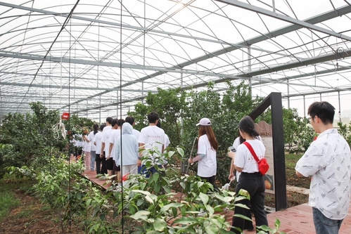 同学们参观柑橘产业园