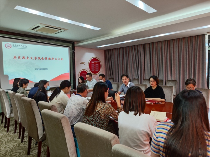 6月16日上午,马克思主义学院在1号楼108会议室举行全体教职工大会。校党委副书记马苗金出席大会。校党委委员、组织部(统战部)部长李颖主持会议。