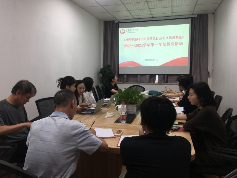 教研室老师们立足“习近平新时代中国特色社会主义思想概论”新教材的使用,围绕如何全面把握教材的理论体系以及如何将教材体系转化为教学体系等问题展开了集体备课。朱娟老师对新学期课程教学工作作了具体安排,从课时安排、课程内容、考核方案、实践教学方案四个方面做了详细介绍,老师们针对各项细节工作进行了充分的交流与讨论,在大家的共同努力下,完善了课程的整体设计与实践教学方案,并表示将认真落实新学期各项教学工作任务。