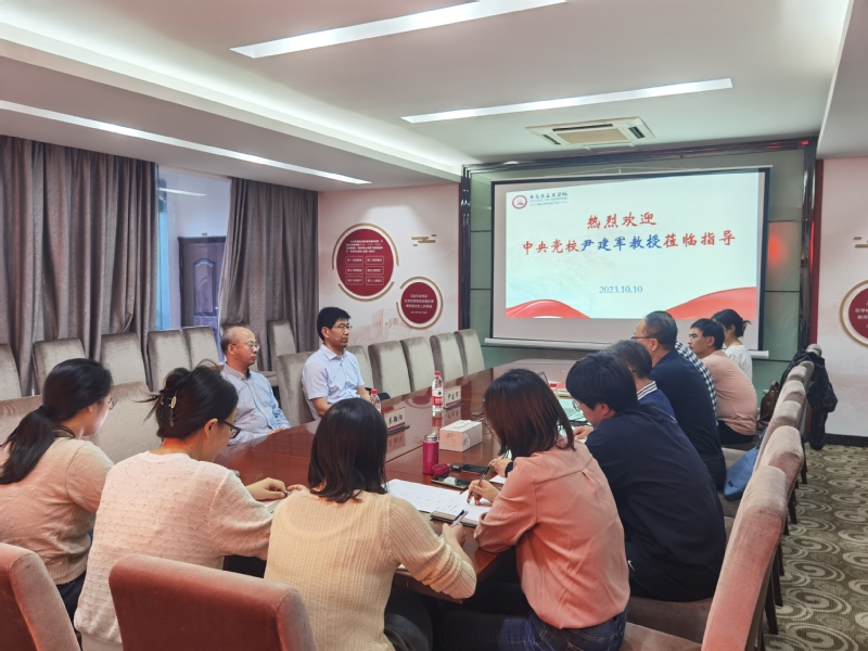 10月10日下午,吴翔阳校长陪同中央党校尹建军教授到马克思主义学院考察调研。