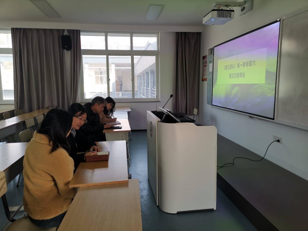 12月7日上午,我院《勇立潮头》第一季专题六教学团队成员在东校区1号楼501教室召开了第三次集体备课会。教学团队成员王恩妍、朱娟、张敏、章甜甜老师均参加了此次备课会。