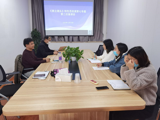 12月14日下午16:00,《勇立潮头》第一季专题七教学团队在东校区1号楼301会议室召开了第二次集体备课会。教学团队负责人吕途院长及团队成员朱娟、李勇、于金艳、刘光艳、张珍珍等老师参加了此次备课会。