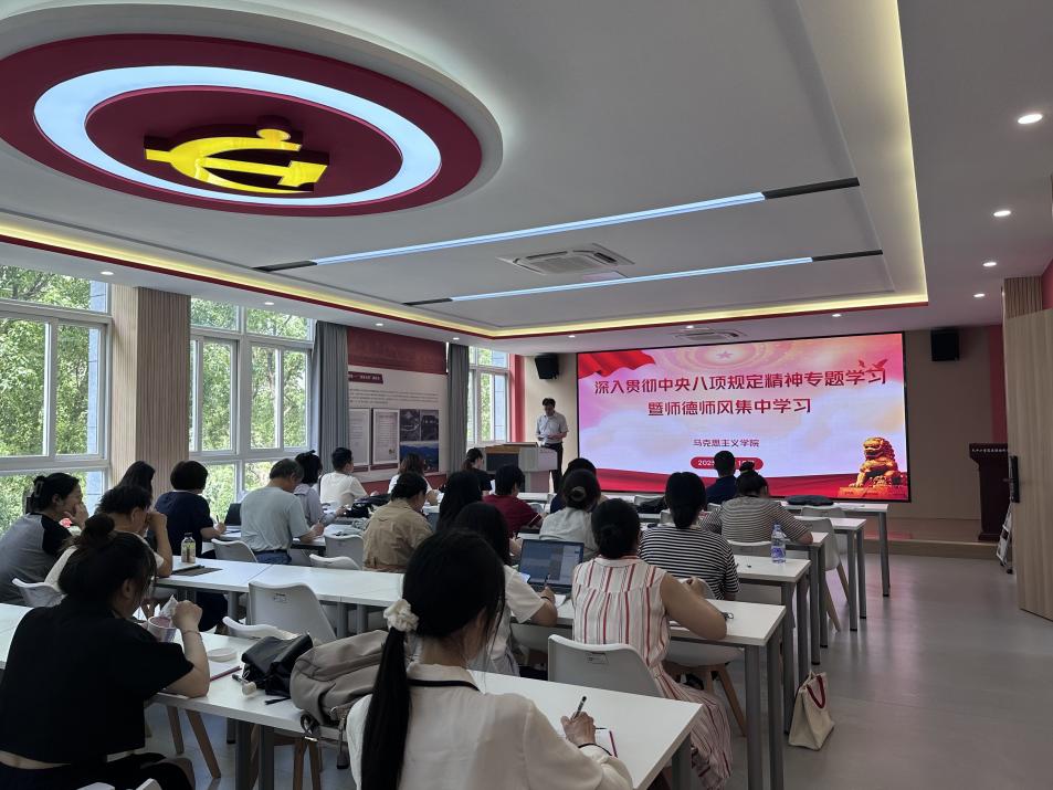 为深入学习贯彻习近平新时代中国特色社会主义思想,扎实推进中央八项规定精神学习教育走深走实,进一步强化学院师德师风建设,6月19日,马克思主义学院直属党支部开展深入贯彻中央八项规定精神专题学习暨师德师风集中学习会议,会议由直属党支部书记吕途主持,学院全体党员教师参加会议。