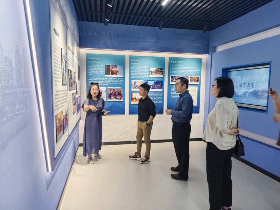 在马克思主义学院教师朱雷、潘雪的陪同下,来宾重点考察了我校在职教出海、国际合作与思政育人方面的实践成果。专家团一行在讲解员引导下,参观了我校思政育人场馆的五大主题展区,深入了解了宁波作为海上丝绸之路“活化石”的历史底蕴、“宁波帮”敢为人先的商贸精神,以及我校在服务共建“一带一路”中的创新实践与育人成效。同时,对思政育人场馆的建设理念与运行模式给予高度评价。