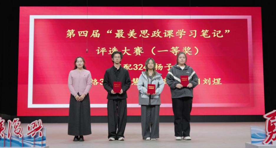在2024-2025学年思想政治理论课类比赛颁奖环节,学校对2024-2025学年在“大学生思政微电影”“最美思政课学习笔记”“最美思政课手抄报”等比赛中表现突出的学生和团队进行了表彰,激励广大同学在思政学习中勇于实践、善于创新。