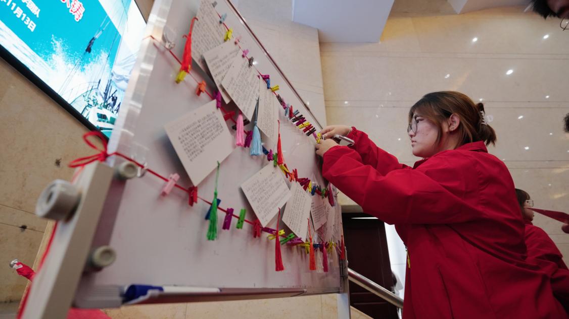感悟在心,更应付诸于行;精神在怀,终将见之于事。为了纪念伟大的抗战精神,将这份珍贵的精神力量永远传递下去,“人亚·青年先锋班”的同学和北仑区淮河小学的同学们共同进行了以“写给80年前的英烈”或“写给未来的自己”为主题的“明信片 寄心语”活动。大学生和小学生代表当众宣读了自己撰写的明信片内容,表达了自己对革命烈士的无限追思与矢志报国的赤子之心。