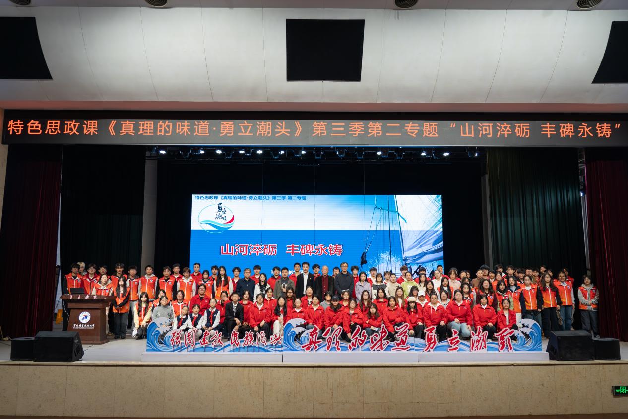 “强国建设,民族复兴,勇立潮头,争做先锋!”2025年11月13日下午,在宁波职业技术大学东校区李惠利大剧院,特色思政课《真理的味道·勇立潮头》第三季第二专题正在开讲!