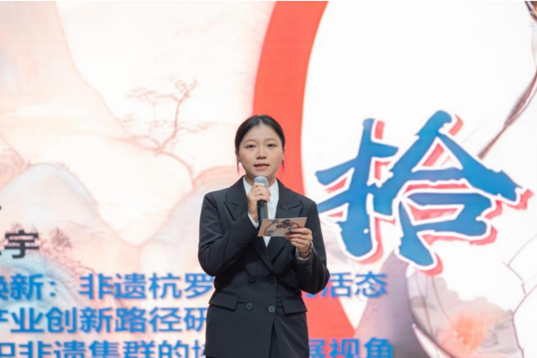 下篇以“兼容并蓄,践行文化使命”为主题,聚焦学校将文化传承融入人才培养的创新实践,展现了宁职师生在非遗传承、文化创新中的青春作为。学生李顺丹团队带来的非遗实践展示《云织锦绣 寻智焕裳——杭罗技艺的活态传承与产业创新路径研究》,生动展现了青年学生在实践中挖掘非遗价值、赋能非遗传承的积极作为。