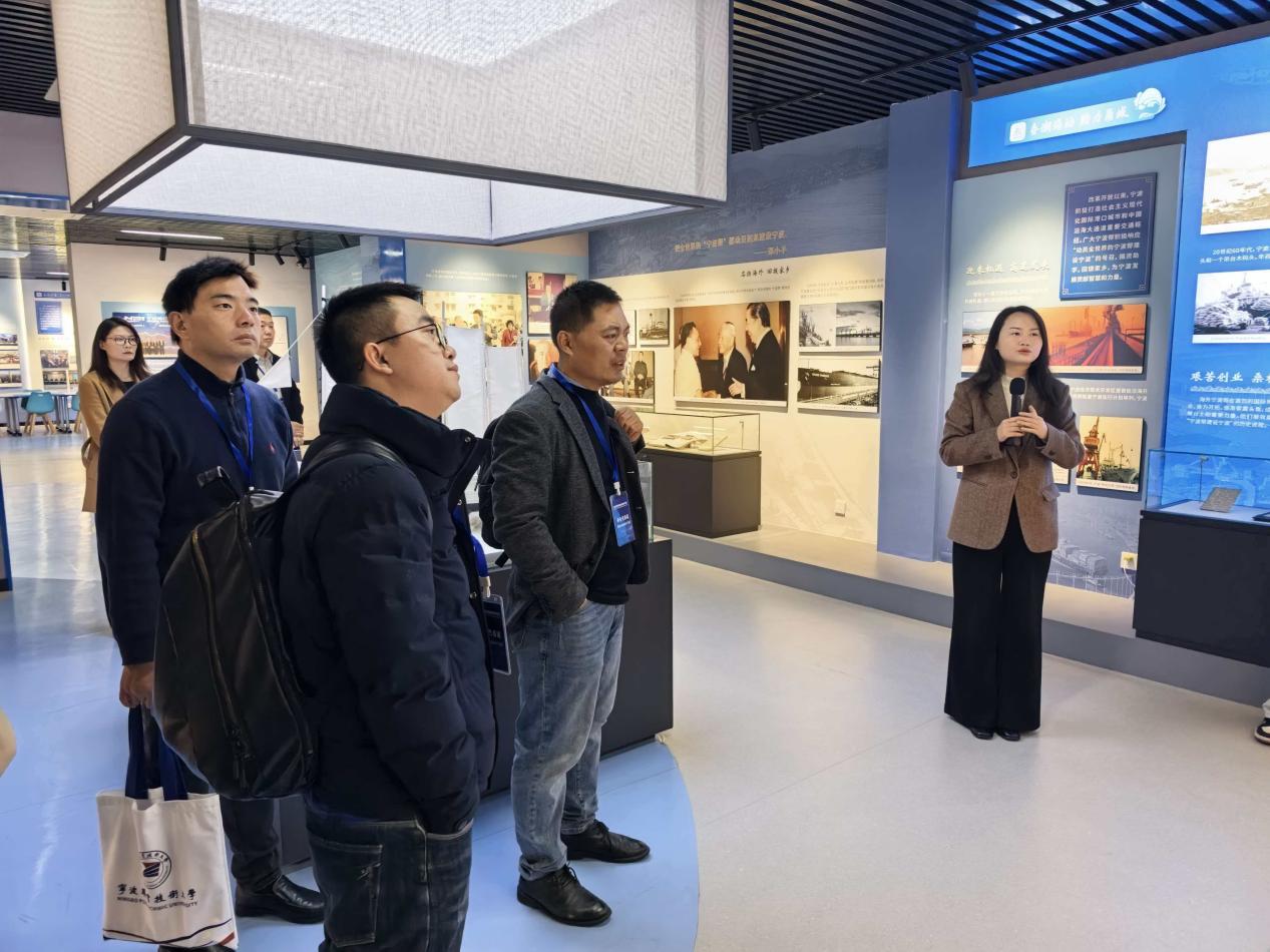 在讲解员的引导下,专家团循着展陈脉络,依次走进“海韵悠长 丝路辉煌”“甬商接力 港城崛起”“港通天下 勇立潮头”“职教出海 宁职先行”“命运与共 携手同行”五大主题展区,细致了解展馆建设背景、设计理念及日常运行情况。参观过程中,专家们不时驻足凝视实物展品、认真观看视频资料,对我校充分整合思政育人资源,将展陈内容与海丝文化、宁职职教出海实践有机融合的创新举措表示高度赞赏。