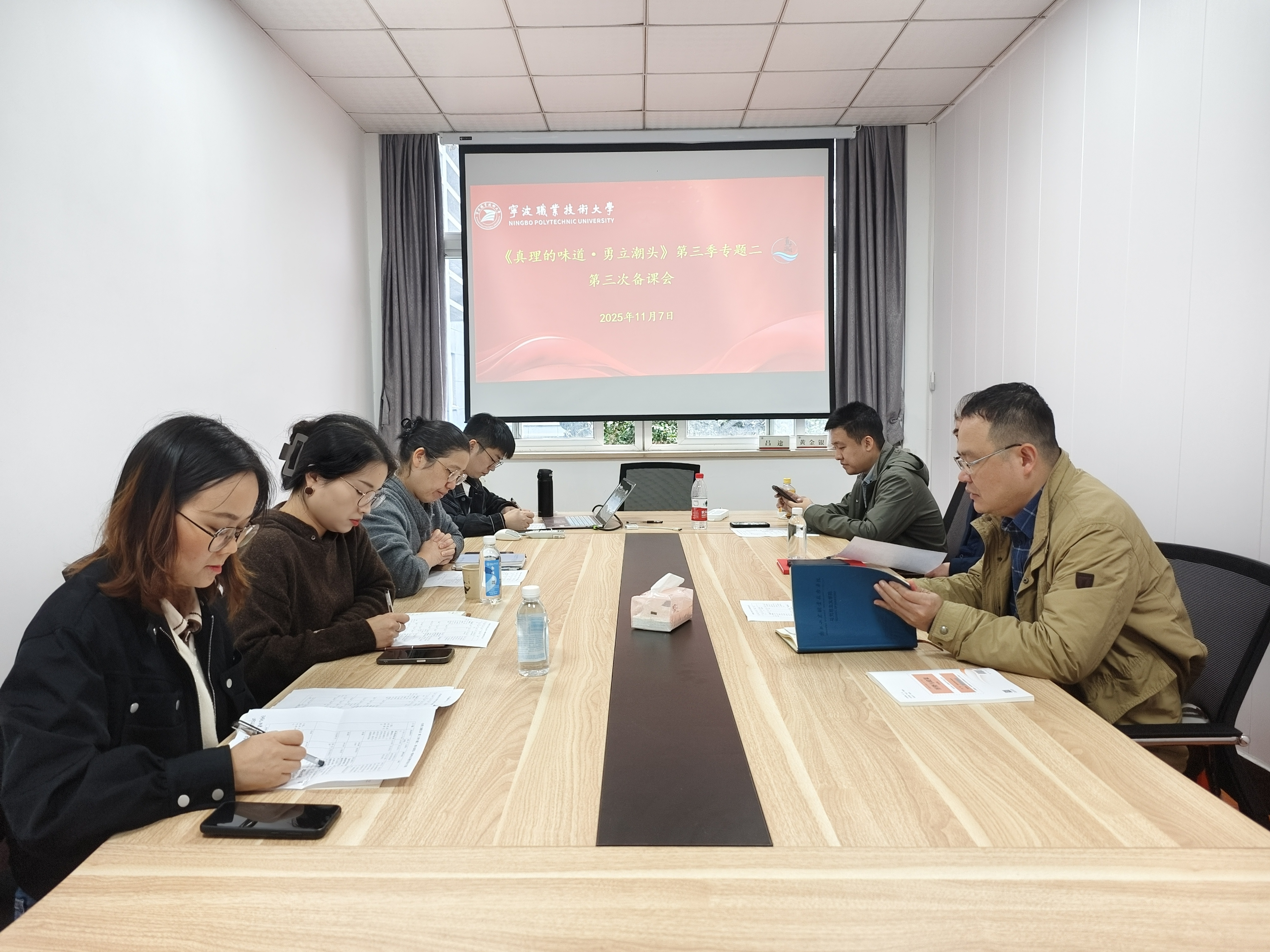 11月7日下午,《真理的味道·勇立潮头》第三季第二专题第三次集体备课会在我院101-2会议室召开。人工智能学院党委副书记方科亚、教师王茹佳,我院副院长吕勇和本专题团队全体教师共同参加了此次备课会。