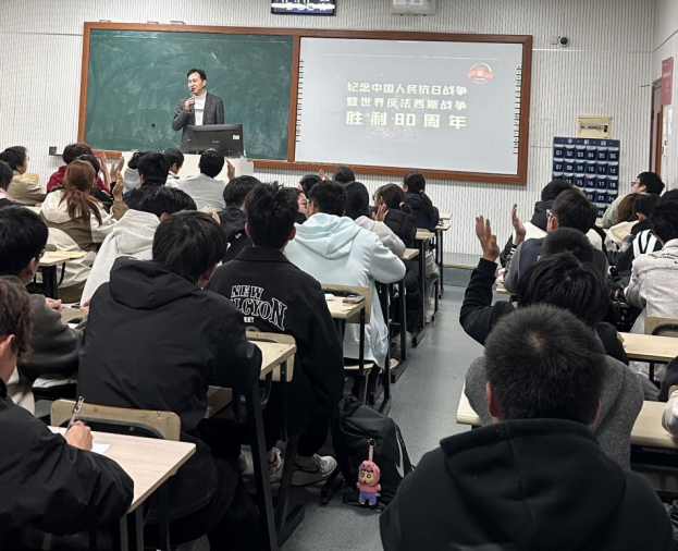 11月17日,校党委副书记马苗金以“纪念抗战胜利坚定民族自信”为主题,为贺贤土学院应用化工4251班和4252班全体学生讲授专题“形势与政策”课。课程结合浙江及宁波地区的抗战历史实践,带领同学们重温峥嵘岁月,汲取奋进力量。