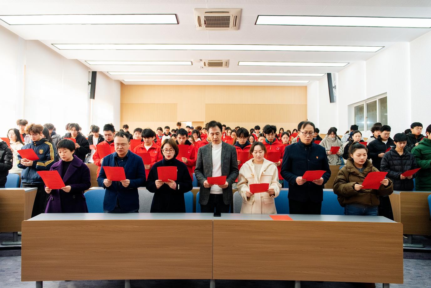 清晨的阳光洒满宁波职业技术大学1号教学楼103教室,“中华人民共和国的一切权力属于人民......”伴随着朗朗书声,宪法晨读环节正式拉开活动帷幕。校党委副书记马苗金、校党委委员李颖、校党委宣传部副部长刘沪波、马克思主义学院院长吕途、副院长吕勇等出席本次活动。马克思主义学院全体教师、2025级“人亚·青年先锋班”全体学员参加本次晨读活动。