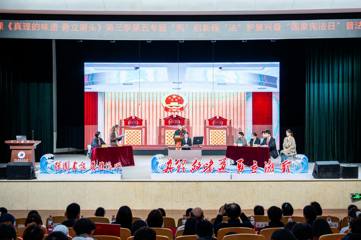 宪法之光映初心,法治精神润校园。2025年12月4日,在第十二个国家宪法日当天,宁波职业技术大学马克思主义学院精心打造的特色思政课《真理的味道・勇立潮头》第三季第五专题暨国家宪法日普法宣传活动如期举行。