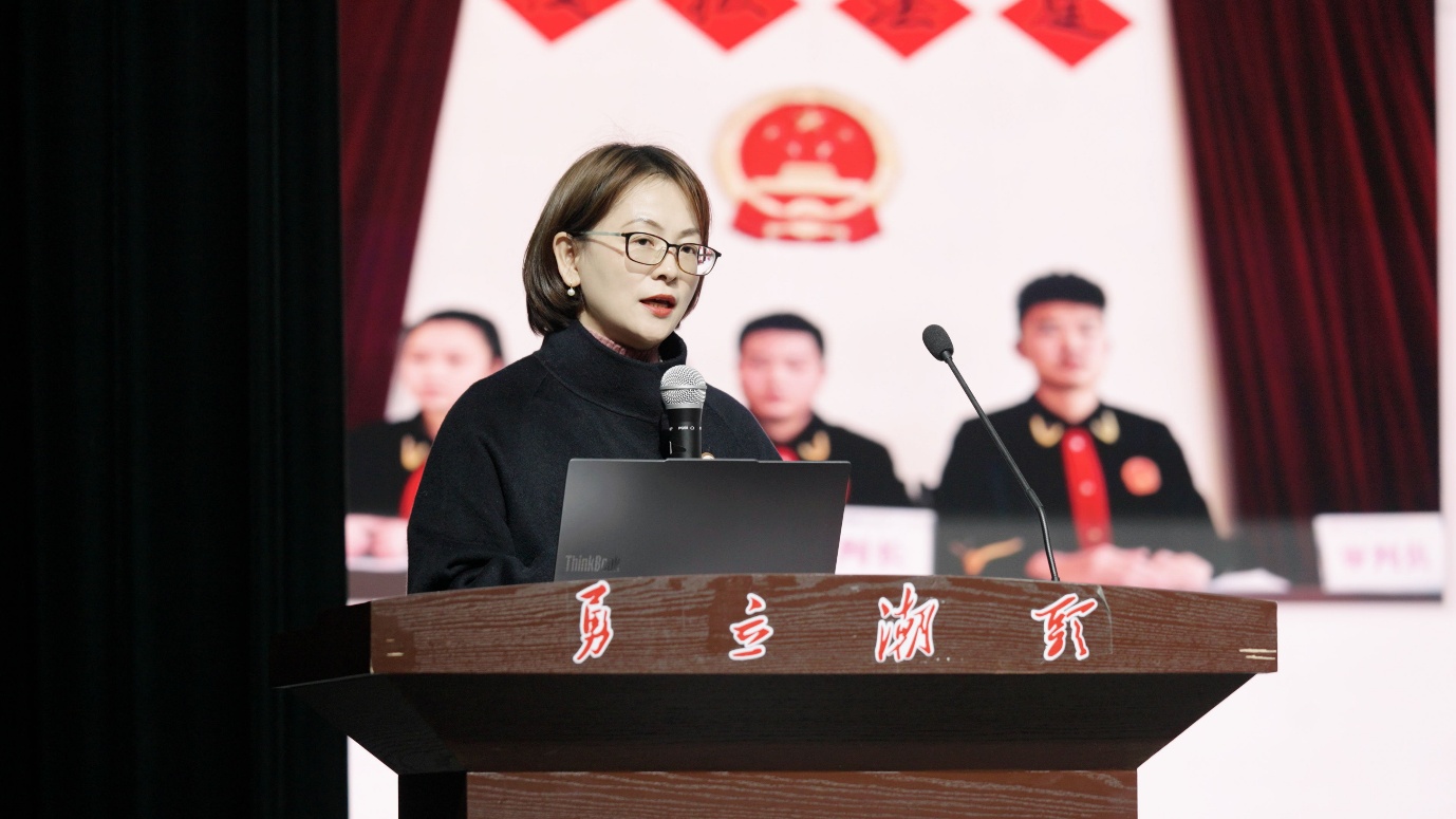 宁波职业技术大学党委委员李颖率先带来《学习法治思想 提升法律素养》专题授课。她以“规矩立身,法律治国”为切入点,重点解读习近平法治思想的核心要义,结合党的二十届四中全会“坚持全面依法治国”的部署要求,通过“上海警察教科书式执法”等现实案例,剖析法治思维中“法律至上、权力制约、公平正义、权利保障、程序正当”五大核心内容,让学生明白“法治不仅是条文,更是解决问题的思维方式”。