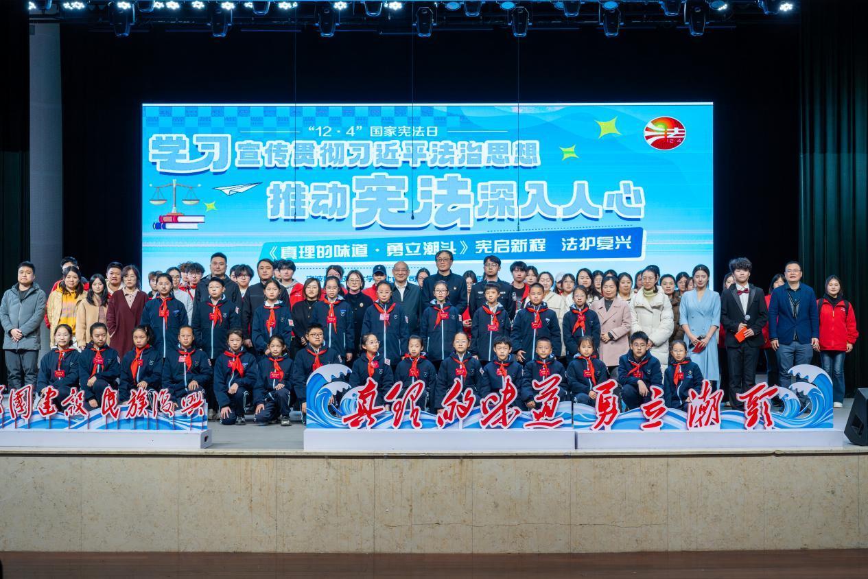 这是该校特色思政课《真理的味道・勇立潮头》第三季第五专题暨“国家宪法日”系列普法宣传教育活动的开端。围绕“学习宣传贯彻习近平法治思想,推动宪法深入人心”的主题,学校以“‘宪’启新程‘法’护复兴”为主线,精心设计了“诵读宪法”“深悟法理”“以案释法”“育法于行”四个特色教学环节,通过一场沉浸式的“法治之旅”,让抽象的法治理论变得可知可感。