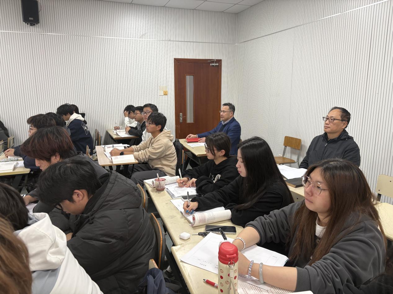 课堂上,吴向鹏校长与物流3252、3253的同学一同认真听课,仔细记录课程的理论架构以及师生互动情况。雷丹丹老师紧扣“社会主义建设道路初步探索的理论成果”章节的内容,通过生动的案例分析与课堂互动,引导同学们深刻理解这些理论成果的历史背景、核心内涵及其对当时乃至今天中国发展道路的重大指导意义,引导学生主动思考、积极互动,课堂组织严谨、氛围活跃。