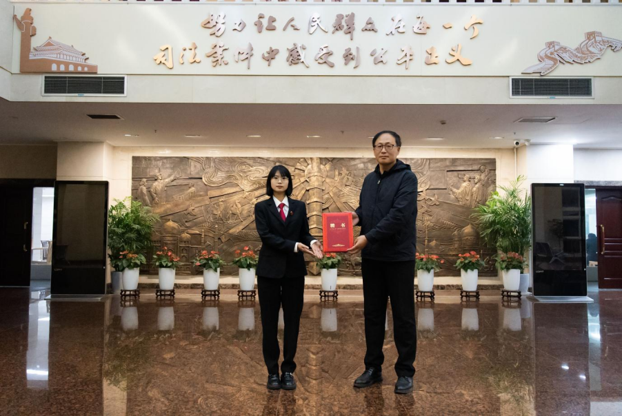 为进一步深化校地法治育人协同合作,马克思主义学院院长吕途教授代表宁波职业技术大学分别向林璐怡、裘佳楠、高瑶瑶三位讲解员颁发 “思政实践导师” 聘书。