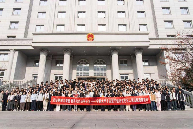 法治兴则国兴,法治强则国强。为学习贯彻推动“宪法宣传周”活动走深走实,12月11日,我校马克思主义学院联合贺贤土学院,组织240余名学生走进宁波市北仑区人民法院,开展“行走的法治课”实践教学活动。本次活动是马克思主义学院特色思政课《真理的味道·勇立潮头》第三季第六专题“观审明鉴 修身笃行”的主要环节,旨在通过沉浸式、思辨型、知行合一的教学模式,引导青年学生在真实庭审中感悟法治精神、树立法治信仰。