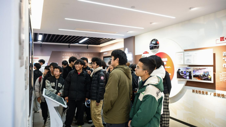 庭审结束后,在法院专业讲解员的引导下,师生们分组开展沉浸式参观学习活动,先后走进诉讼服务大厅、“浙里春风・童护航”未成年人审判工作室与北仑区人民法院院史文化馆,全方位、多角度探索法治文化的深层内涵。