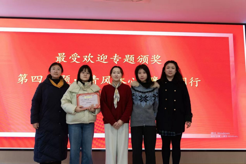 通过全体先锋班学员的投票,评选出本季“最受欢迎专题”—— “清风沐心,廉韵润行”。该专题聚焦廉洁文化建设,将思政课堂移至全国廉政教育基地宁波江北慈城清风园,通过实地参观、现场授课、互动分享等多种教学形式,引导青年学子自觉成为清廉文化的传承者与践行者。这堂生动的实践教学课,让历史“活”了起来,让廉洁文化在古今对话中绽放新的光彩,赢得了同学们的一致好评。教师代表王馨在发言中深情回顾了教学历程,她表示:“思政教育如同春风化雨,重在潜移默化。我们希望通过有温度、有故事、有互动的课堂,真正走进学生心里,陪伴他们系好人生的第一粒扣子。”