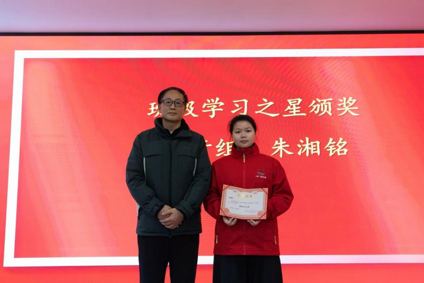 在热烈的掌声中,会议进入表彰环节。本季课程中,笃行组凭借持续的团队协作与优异的学习成果,荣获 “优秀学习小组” 称号。朱湘铭同学以出色的综合表现,获评 “班级学习之星”。