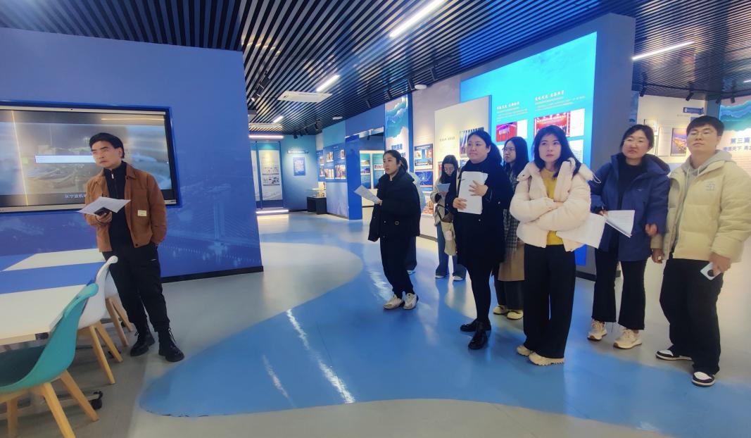 随后,全体教师移步至“海通波宁大道同行”主题展馆,开展第一次学生实践活动的教学准备工作。场馆管理教师郭兰师为大家详细讲解了“海通波宁大道同行”主题展馆内各项设备的使用方法,包括多媒体互动屏的操作、展陈灯光调控、音视频设备调试等,为后续学生参观实践提供了技术保障。教研室负责人王馨围绕即将开展的第一次学生主题实践进行了现场教学讲解展示。她结合展馆内容,系统梳理了实践教学的流程设计、重点讲解环节及学生任务安排,展示了如何通过场馆资源引导学生深入理解“全面深化改革开放”、“高质量发展”等课程重要内容。