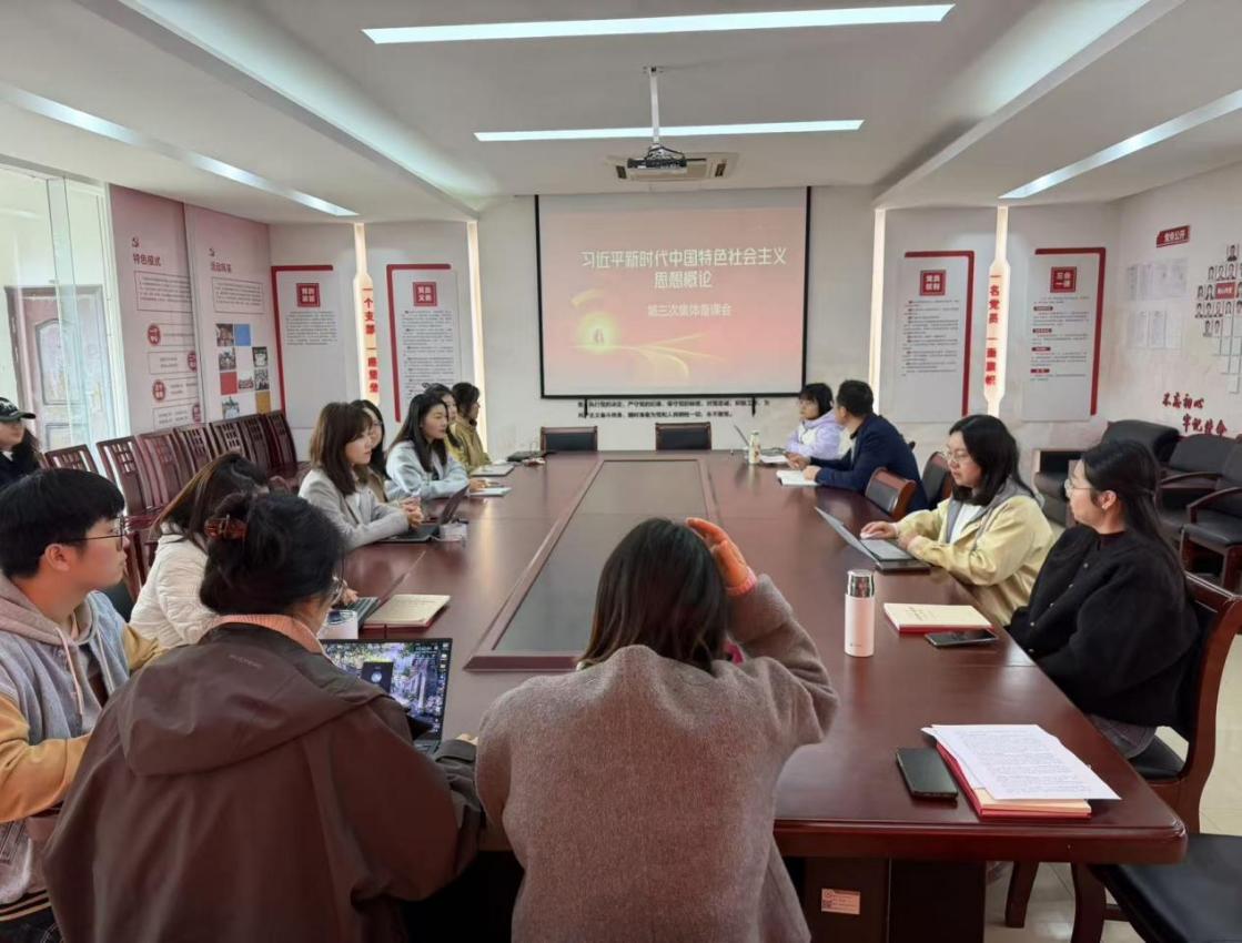 3月26日中午,马克思主义学院组织召开《习近平新时代中国特色社会主义思想概论》课程第三次集体备课会。本次教研会围绕“如何有效利用场馆开展实践教学”与“第三专题‘坚持党的全面领导’和‘全面从严治党’教学研讨”两个主题展开,全体任课教师参加活动。