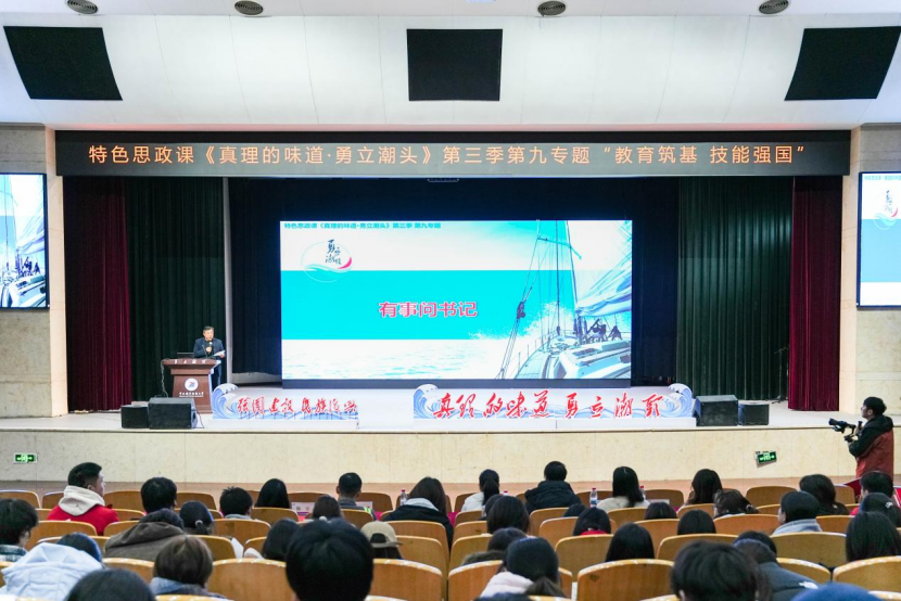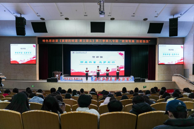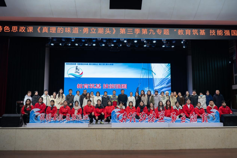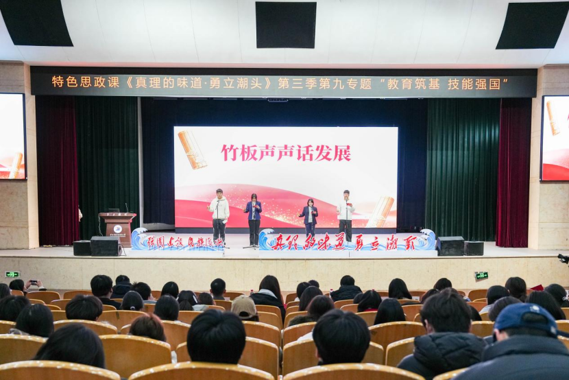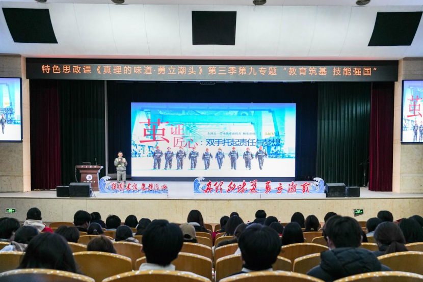 职教潮头立,匠心铸未来。2025年12月26日,宁波职业技术大学特色思政课《真理的味道・勇立潮头》第三季第九专题“教育筑基 技能强国”在李惠利大剧院开讲。本专题由校党委书记张慧波教授领衔教学团队,特邀企业导师、优秀校友与师生代表同台,通过“匠心传承 聚力争先”与“职教赋能 共富同频”上下篇章,生动阐释职业教育在强国建设、民族复兴中的使命担当。