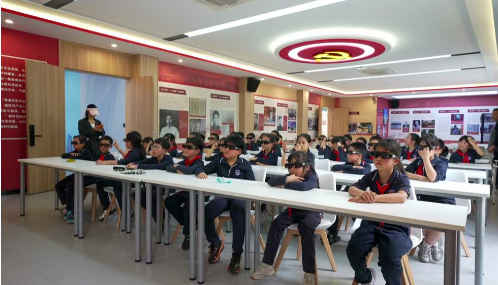 在“红色浙东 峥嵘岁月”主题展馆,一场别开生面的红色研学体验精彩呈现,其中3D虚拟红色知识场景体验更是成为活动亮点,现场气氛热烈而庄重。同学们佩戴3D眼镜,沉浸式走进虚拟红色场景,仿佛穿越峥嵘岁月,直观感受革命先辈的奋斗历程,在身临其境的体验中学习红色知识、感悟红色精神。